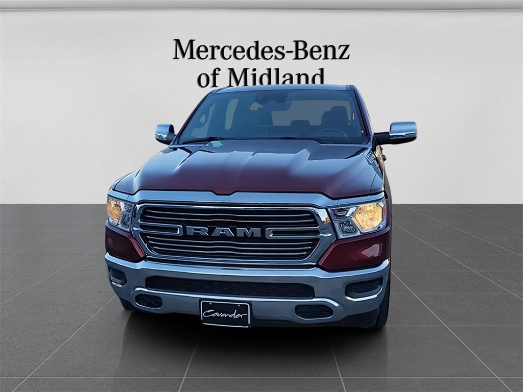 Equipment: Quick Order Package 27H Laramie, #1 Seat Foam Cushion, 10 Speakers, 3 Rear Seat Head Restraints, 3.21 Rear Axle Ratio, 4 Way Front Headrests, 4-Wheel Disc Brakes, 48V Belt Starter Generator, 4G LTE Wi-Fi Hot Spot, ABS brakes, Adjustable pedals, Air Conditioning, Alloy wheels, AM/FM radio: SiriusXM with 360L, Apple CarPlay, Apple CarPlay/Android Auto, Audio memory, Auto-dimming door mirrors, Auto-Dimming Exterior Driver Mirror, Auto-dimming Rear-View mirror, Automatic temperature control, Brake assist, Bumpers: chrome, Chrome Exterior Mirrors, Class IV Receiver Hitch, Compass, Connected Travel & Traffic Services, Connectivity - US/Canada, Convex Wide-Angle Exterior Mirror Insert, Delay-off headlights, Disassociated Touchscreen Display, Driver door bin, Driver Seat Memory, Driver vanity mirror, Dual front impact airbags, Dual front side impact airbags, Electronic Stability Control, Exterior Mirrors Courtesy Lamps, Exterior Mirrors w/Heating Element, Exterior Mirrors w/Memory, Exterior Mirrors w/Supplemental Signals, For Details, Visit DriveUconnect.com, For More Info, Call 800-643-2112, Front anti-roll bar, Front Center Armrest w/Storage, Front dual zone A/C, Front fog lights, Front License Plate Bracket, Front reading lights, Front Seat Back Map Pockets, Front wheel independent suspension, Fully automatic headlights, Garage door transmitter, Global Telematics Box Module (TBM), Google Android Auto, GPS Antenna Input, GPS Navigation, HD Radio, Heated door mirrors, Heated Front Seats, Heated front seats, Heated Steering Wheel, Heated steering wheel, Illuminated entry, Integrated Center Stack Radio, Integrated Voice Command w/Bluetooth, Leather steering wheel, Leather Trim 40/20/40 Bench Seat, Low tire pressure warning, Manufacturer's Statement of Origin, Memory seat, MOPAR Front & Rear Rubber Floor Mats, Navigation System, Occupant sensing airbag, Outside temperature display, Overhead airbag, Overhead console, Panic alarm, ParkView Rear Back-Up Camera, Passenger door bin, Passenger vanity mirror, Pedal memory, Power 2-Way Driver Lumbar Adjust, Power 2-Way Passenger Lumbar Adjust, Power 8-Way Driver & Passenger Seats, Power door mirrors, Power driver seat, Power passenger seat, Power steering, Power windows, Power-Folding Mirrors, Radio data system, Radio: Uconnect 5 Nav w/8.4" Display, RAM Grille Badge - Chrome, Rear 60/40 Folding Seat, Rear anti-roll bar, Rear seat center armrest, Rear step bumper, Remote keyless entry, Security system, SiriusXM Radio Service, SiriusXM w/360L, Speed control, Split folding rear seat, Steering wheel mounted audio controls, Tachometer, Telescoping steering wheel, Tilt steering wheel, Traction control, Trip computer, Turn signal indicator mirrors, USB Host Flip, Variably intermittent wipers, Ventilated Front Seats, Ventilated front seats, Voltmeter, and Wheels: 18" x 8" Aluminum Base Painted. For Mercedes-Benz vehicles, AMG® and 4MATIC® are registered trademarks of Mercedes-Benz Group AG. Android AutoTM is a trademark of Google LLC. Apple CarPlay® is a registered trademark of Apple Inc. harman/kardon® and Logic 7 are registered marks of Harman International Industries, Incorporated. Burmester® is a registered trademark of Burmester Audiosysteme GmbH, Berlin, Germany. Bluetooth® is a registered mark of Bluetooth SIG, Inc.